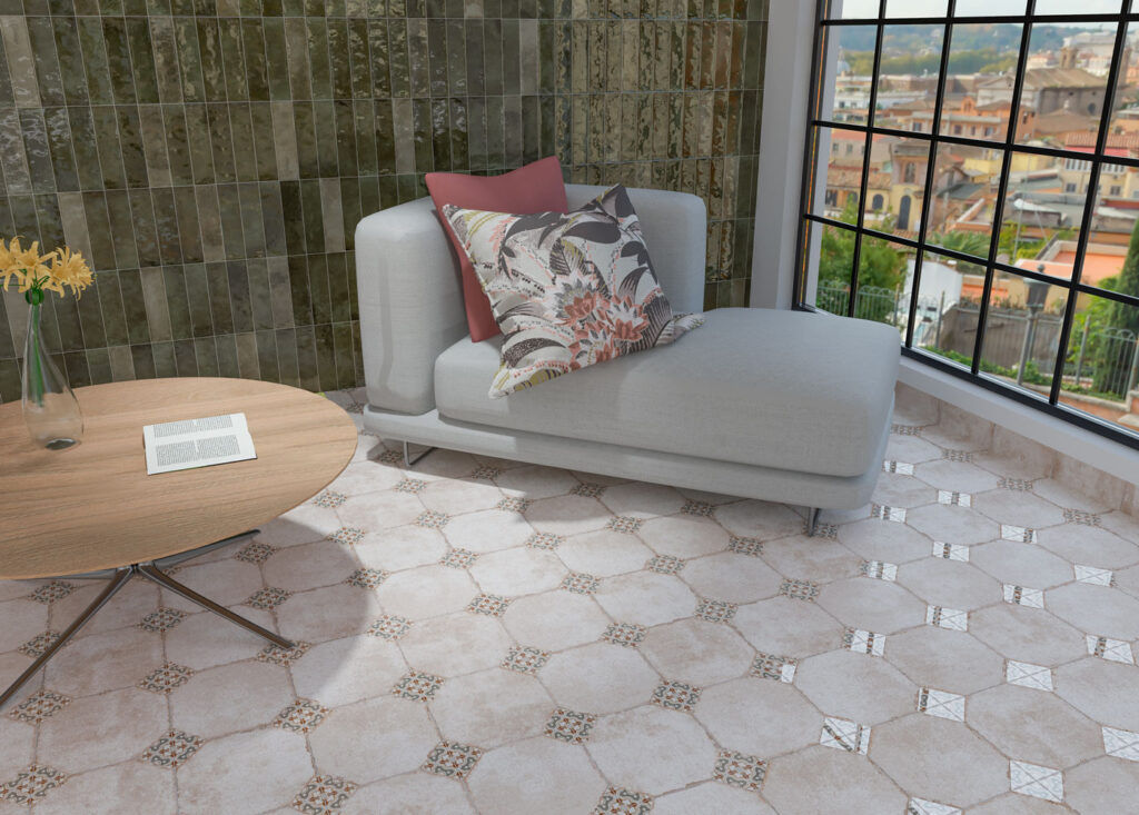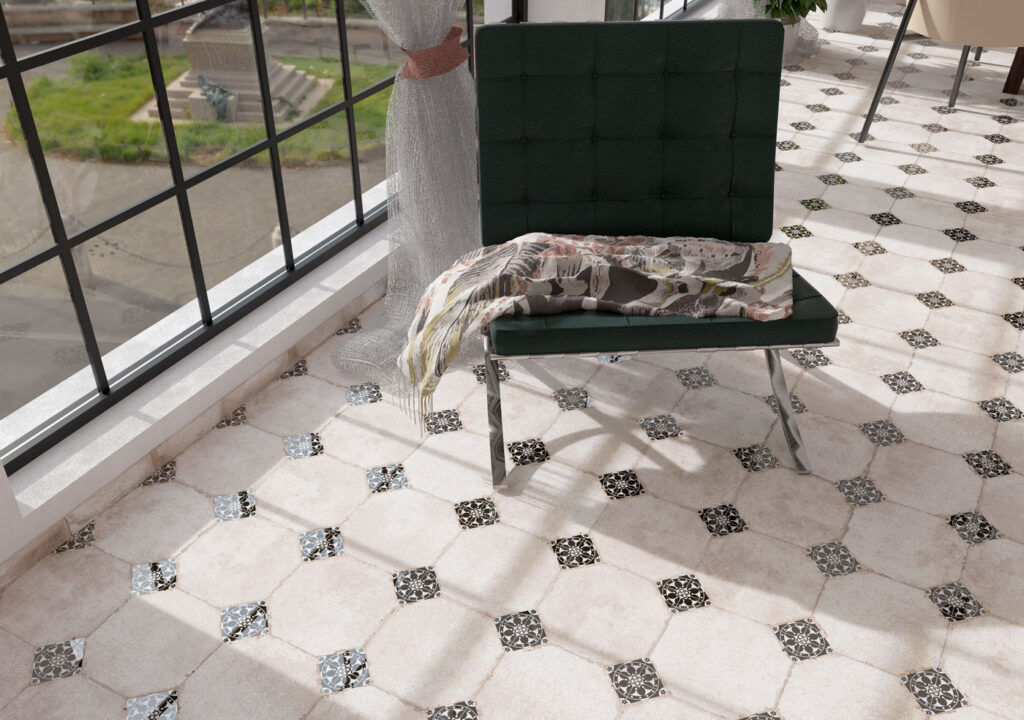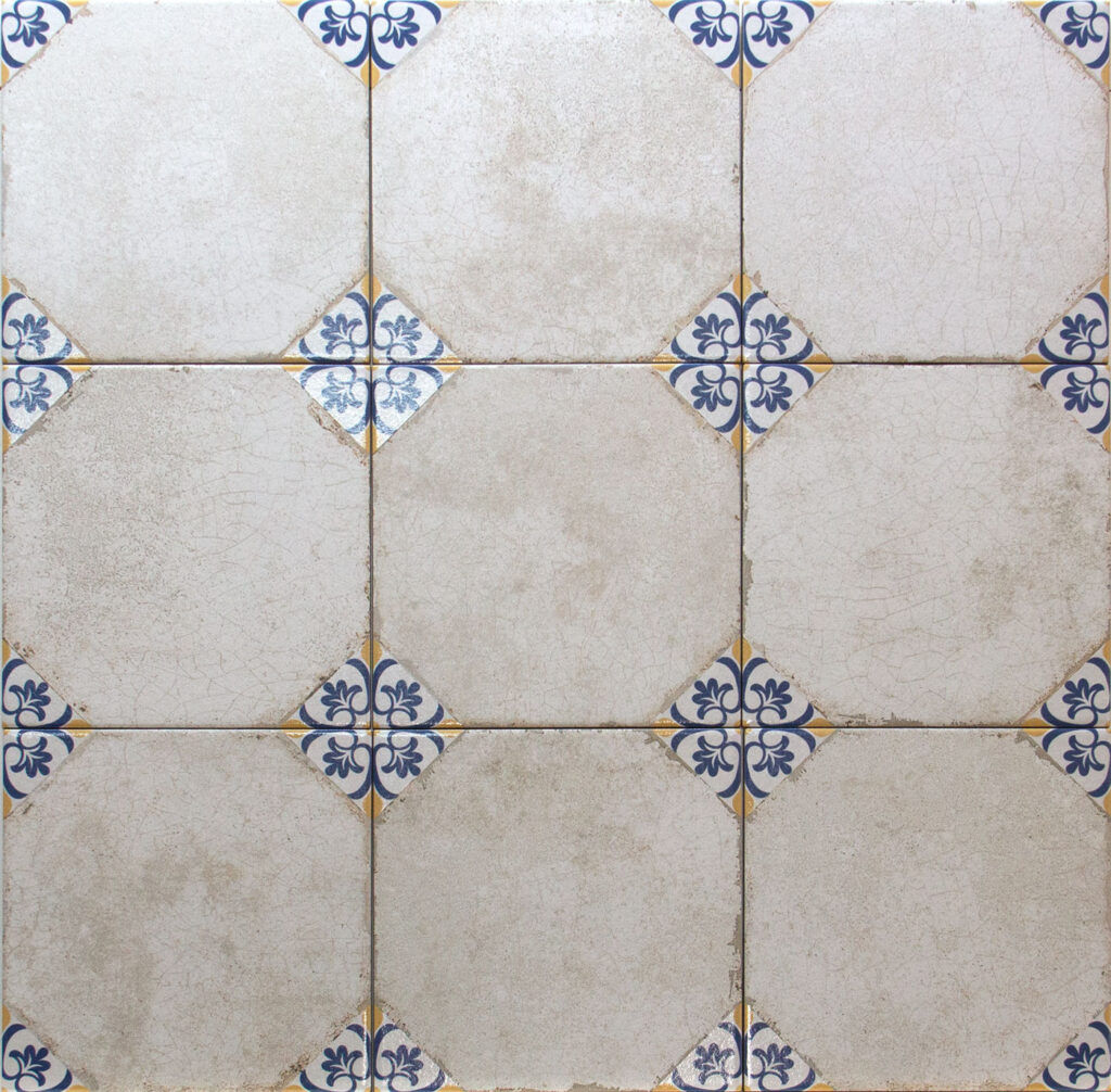 Baldosa de Gres Porcelanico para pavimento. Medida de 22,5×22,5 de Textura Mate. Diseños antiguos sobre base rústica para revestir cualquier estancia del hogar con el encanto y las opciones decorativas que ofrece la cerámica.