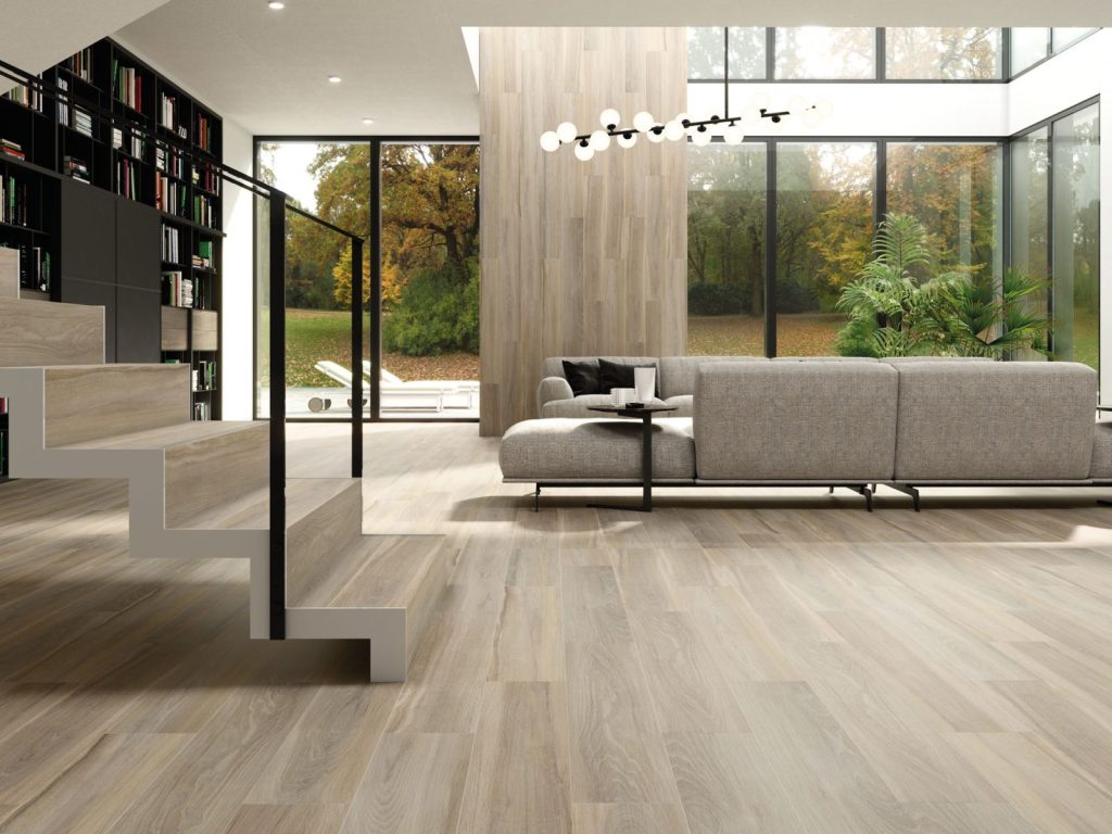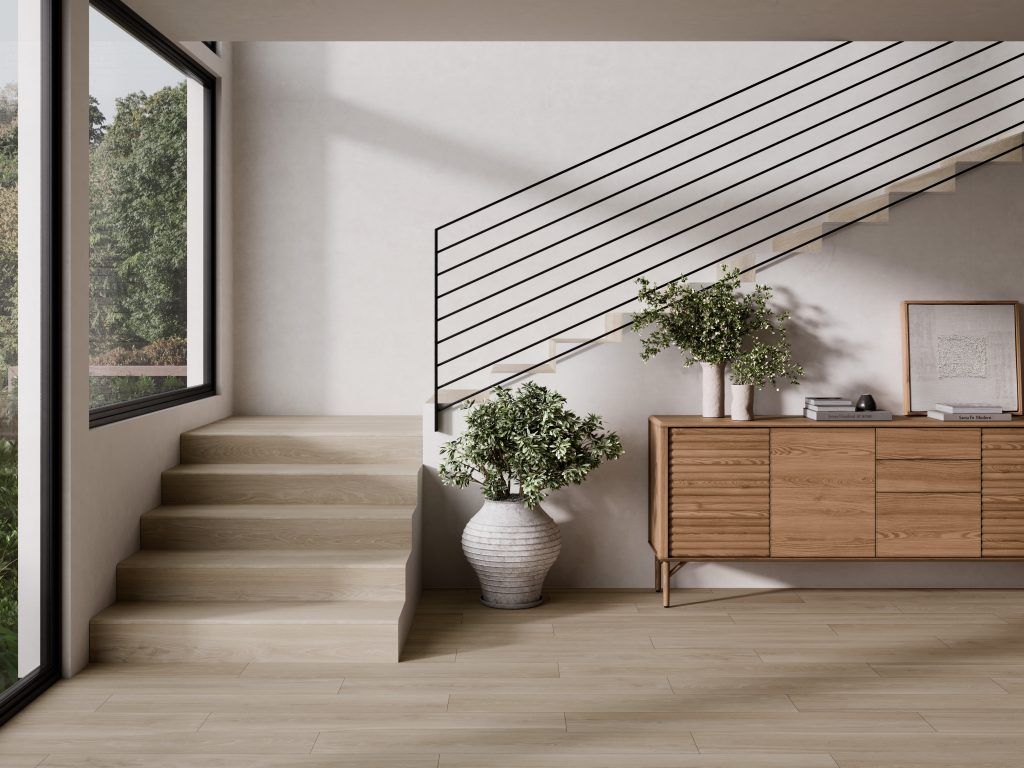 Baldosa de Gres Porcelánico para Pavimento y Revestimiento. Medida 20×120 de Textura Mate Rectificado, ademas del Hexagonal 19,8×22,8, plaqueta 5×50 y el formato Chevron de 8×40. Su cuidada estética reproduce la madera natural con una suave veta clásica, combinando el encanto tradicional con la resistencia y durabilidad del gres porcelánico.