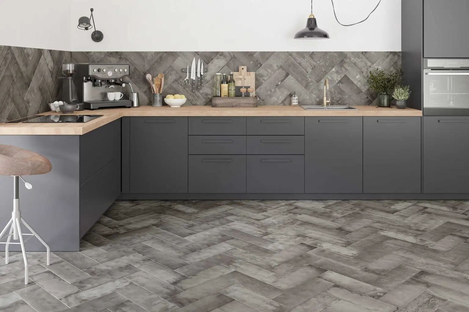 Baldosa de Gres Porcelánico para pavimento y revestimiento. Medidas de 15×45 de Textura Mate con detalles de brillo. Cerámica decorativa con la que podrás crear tu cocina más moderna, o tu baño más renovador.