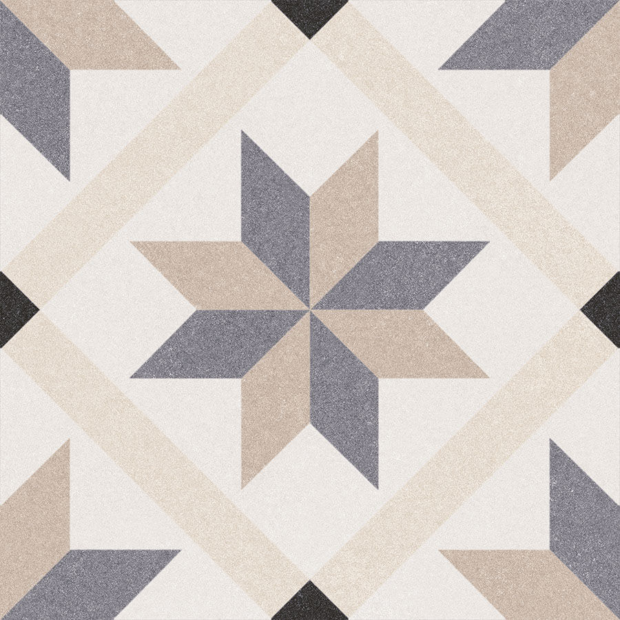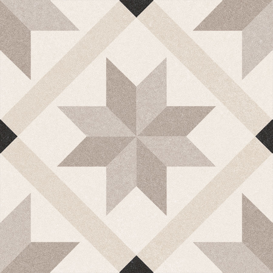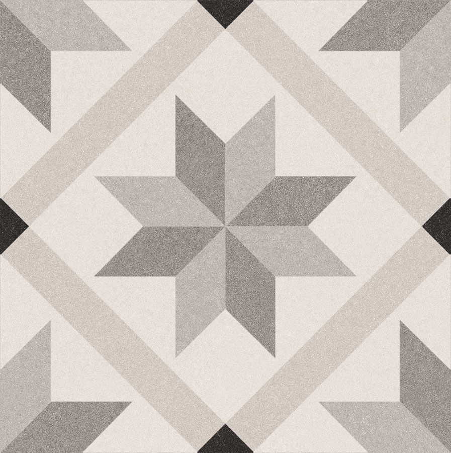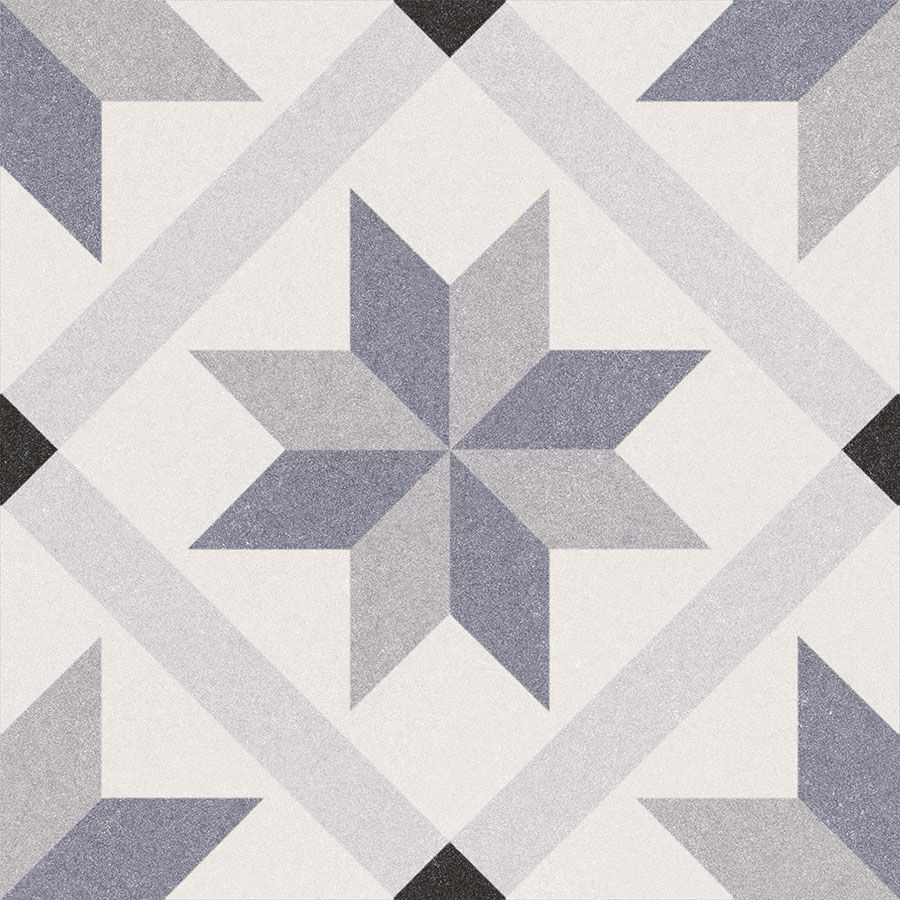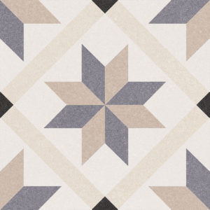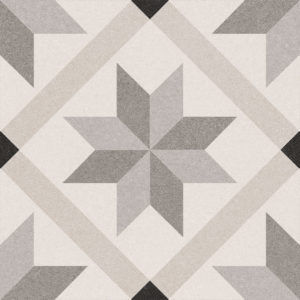 Baldosa de Gres Porcelánico de Pasta Blanca para pavimento y revestimiento. Medida de 22,5×22,5 de Textura Mate. Cerámicas que representan uno de los símbolos de los azulejos hidráulicos donde podrás representar el estilo vintage que andas buscando.