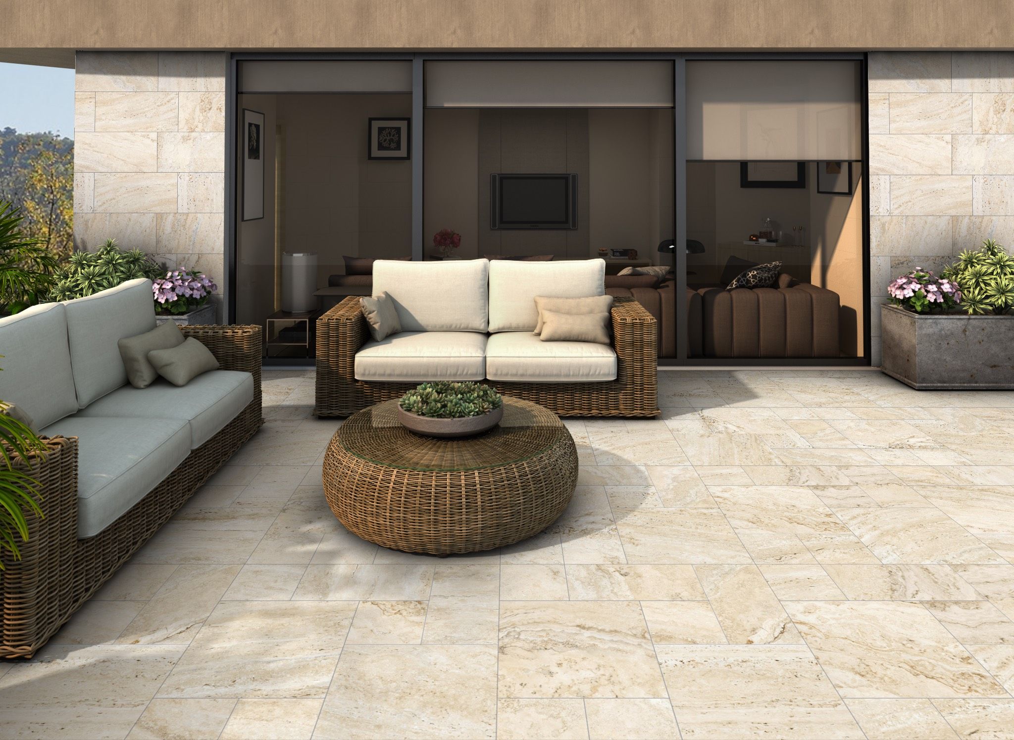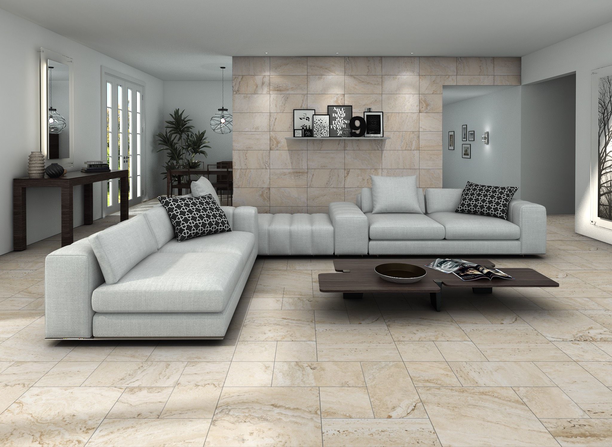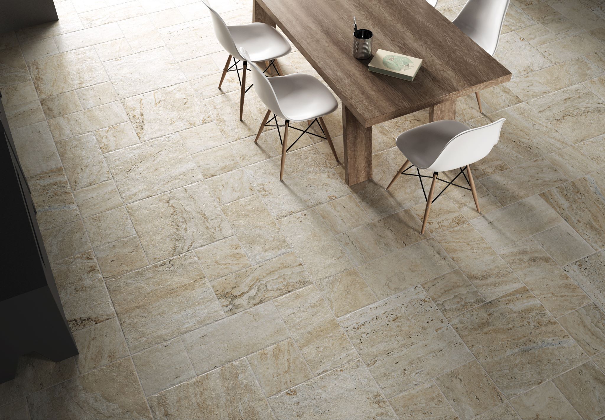 Baldosa de Gres Porcelánico de Pasta Blanca para pavimento y revestimiento. Versatilidad de formatos y de Textura Mate. Imitación de la piedra natural, de aspecto compacto y variantes gráficas y cromáticas como ejemplo de las rocas sedimentarias.